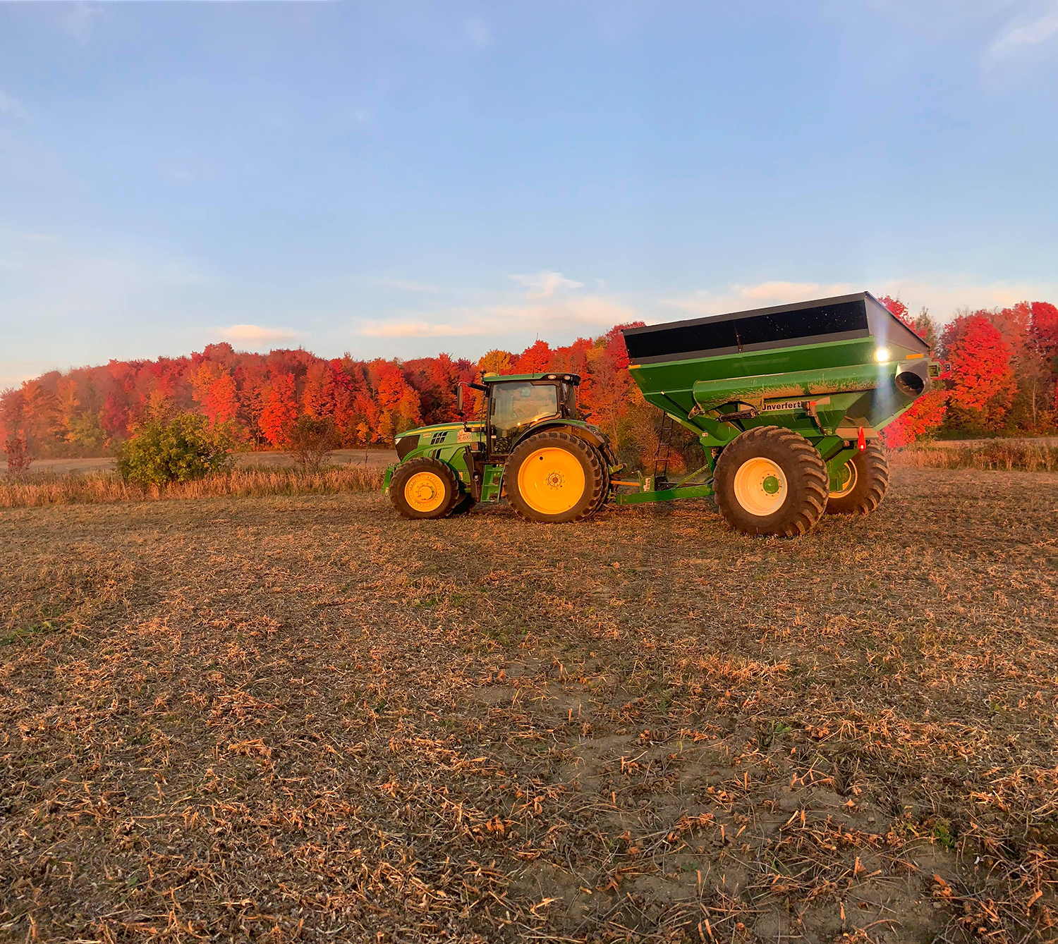 L’ épandage de fumier solide à haute précision avec GPS. Du semis de maïs, soya et céréales avec un Lemken au 5 pouces. Un distributeur d’engrais Kuhn sur le troisième point hydraulique. Du battage de céréales, de soya et de maïs. Des travaux de pelle mécanique et de nivelage avec système GPS.